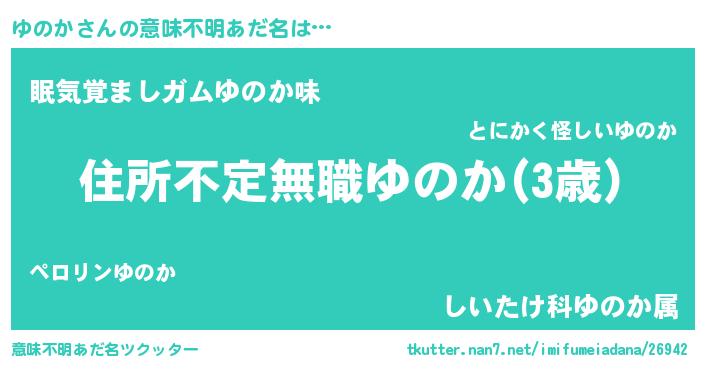 | 男性向けラノベタイトル風あだ名 | 『ゆのかに滅ぼされるだけの簡単なお仕事です』 |