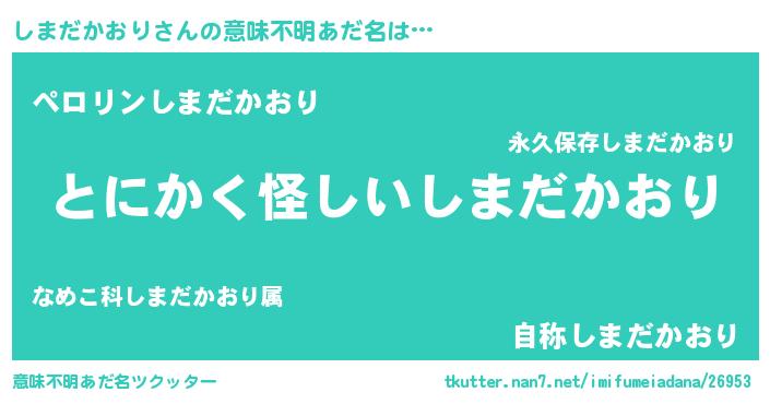 | ポケモン風あだ名 | 『ヒシマダカオリ』『シマチュウ』 |