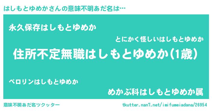 | ヘコむあだ名 | 『はしもとゆめか(小並感)』『はしお』 |