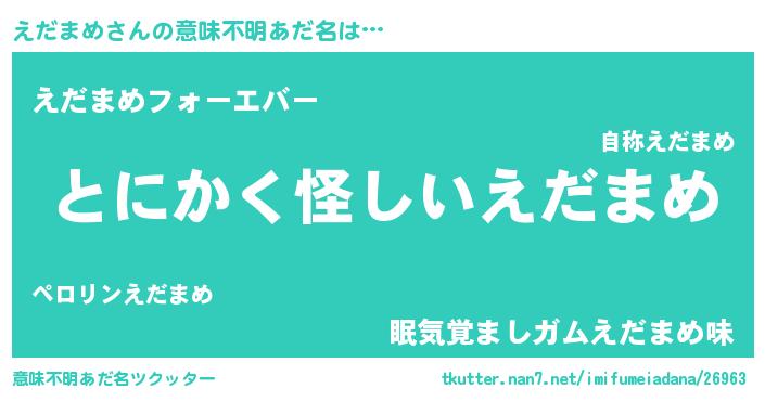 | 女子向けラノベタイトル風あだ名 | 『えだまめの卵を拾いまして』 |