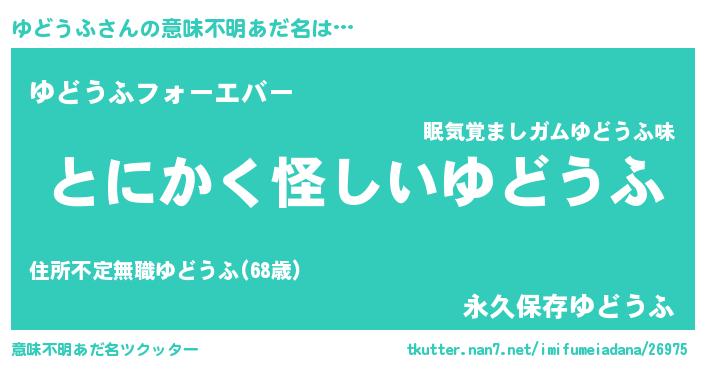 | 胡散臭い通販商品みたいなあだ名 | 『信頼と実績のサプリメント…その名も「ゆどうふ」』 |