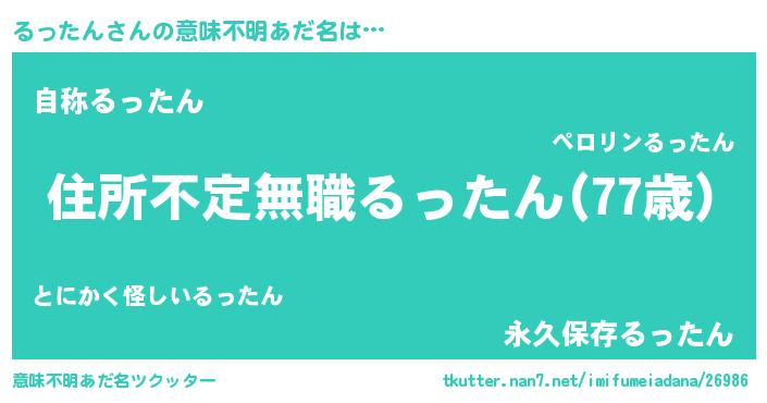 | 胡散臭い通販商品みたいなあだ名 | 『あなたにだけ特別に提供する世界で10本だけ現存している希少なブランデー…その名も「るったん」』 |
