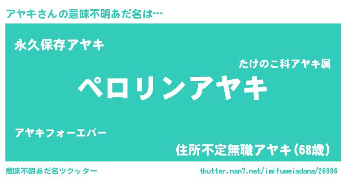 | 胡散臭い通販商品みたいなあだ名 | 『億万長者になれる水晶球…その名も「アヤキ」』 |