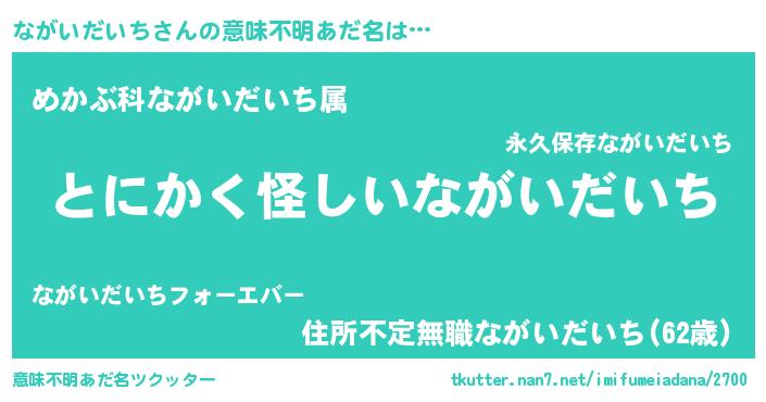 | 胡散臭い通販商品みたいなあだ名 | 『信頼と実績のサプリメント…その名も「ながいだいち」』 |