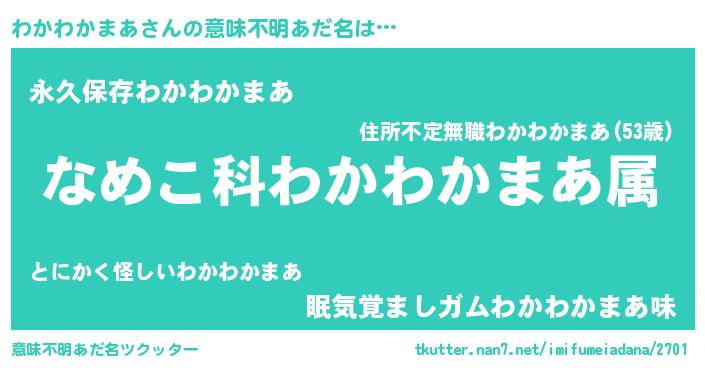 | 男性向けラノベタイトル風あだ名 | 『転生したらわかわかまあだった件』 |