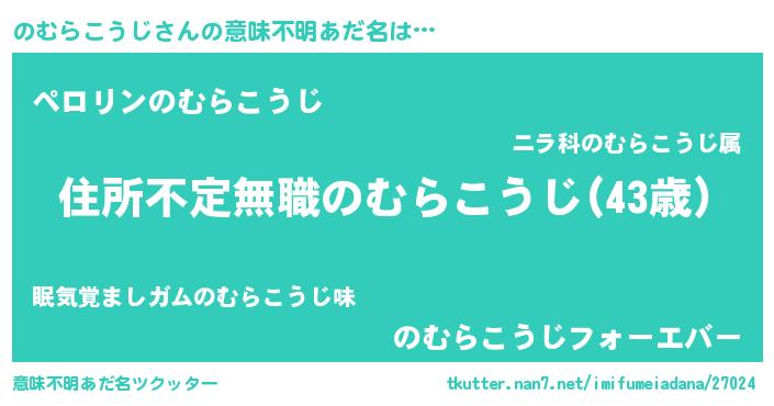 | 女子向けラノベタイトル風あだ名 | 『乙女ゲームの破滅フラグしかない悪役のむらこうじに転生してしまった…』 |