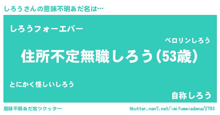 | ヒーロー風カッコイイあだ名 | 『仮面シロダー』『ウルトラしろうマン』 |
