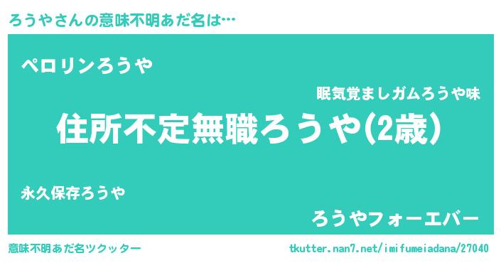 | 男性向けラノベタイトル風あだ名 | 『魔弾の王とろうや』『ろうやの憂鬱』 |