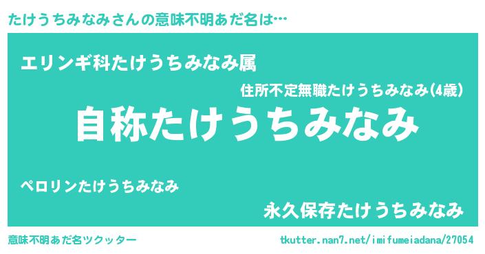 | ヘコむあだ名 | 『たけうちみなみ(笑)』『たけにゅー』 |