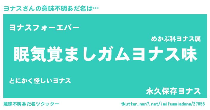 | 男性向けラノベタイトル風あだ名 | 『ノーゲーム・ノーヨナス』 |