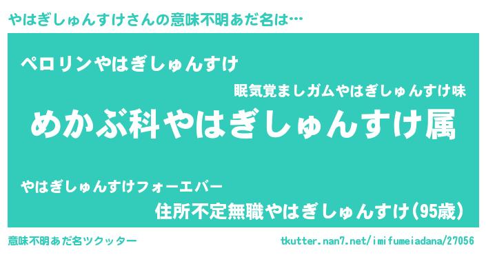 | 欧米人風あだ名 | 『やはぎしゅんすけ・ステッグマイヤー』 |