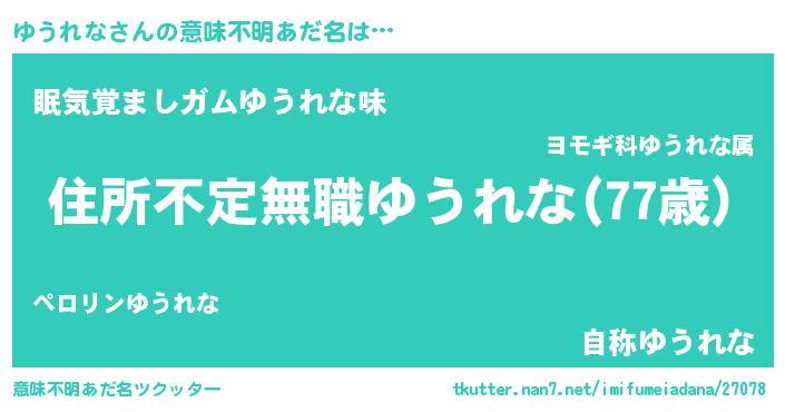| ヘコむあだ名 | 『ゆうもー』『ゆうれな(小並感)』 |