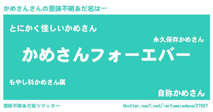 | ファンタジー風あだ名 | 『エターナルカメサンー』『ゼカメトゥ』 |