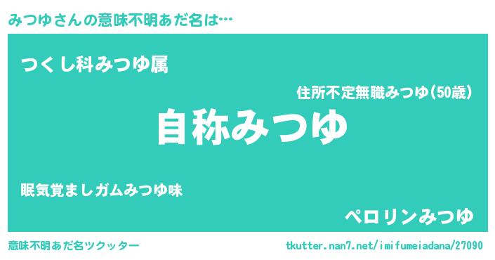 | ヒーロー風カッコイイあだ名 | 『サイバー戦士ミツユ』『スーパーミツユ』 |