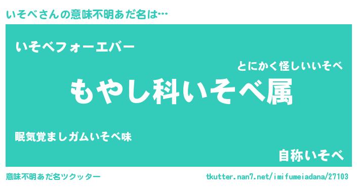 | 女子向けラノベタイトル風あだ名 | 『いそべの玉の輿計画!』『闇のいそべ』 |