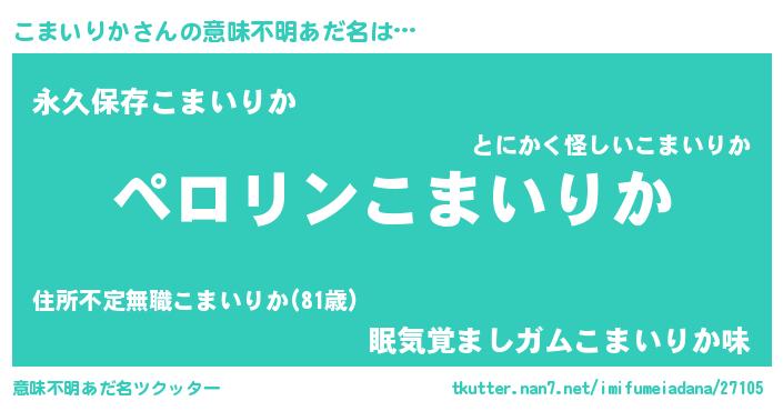 | 欧米人風あだ名 | 『こまいりか・ステッグマイヤー』 |