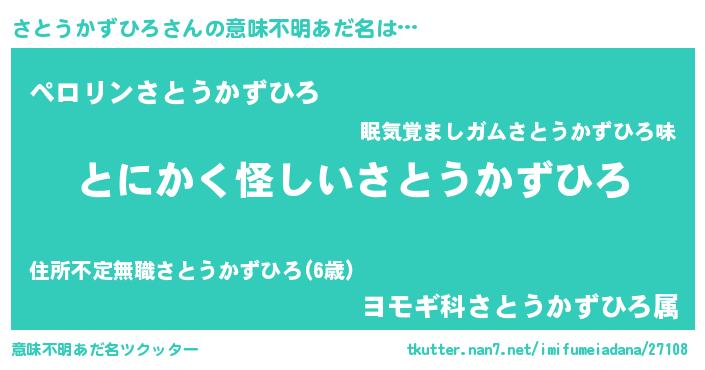 | ポケモン風あだ名 | 『ヒサトウカズヒロ』『サトゴンZ』 |