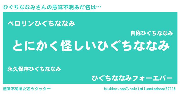| 欧米人風あだ名 | 『ウサインひぐちななみ』 |