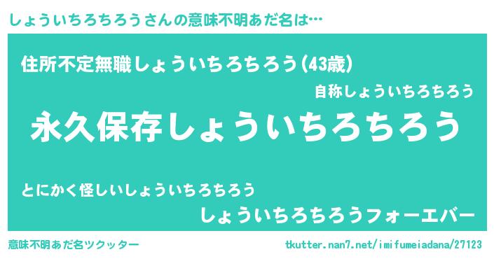 | 女子向けラノベタイトル風あだ名 | 『異世界で失敗しない100のしょういちろちろう』 |