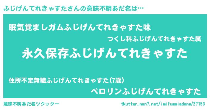 | 男性向けラノベタイトル風あだ名 | 『ふじげんてれきゃすたという概念が存在しない退屈な世界 』 |