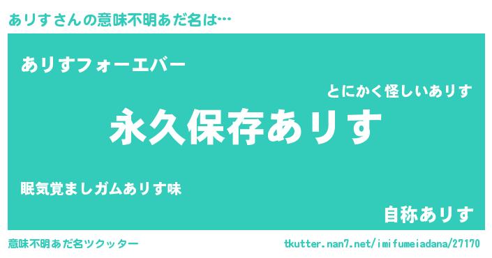 | ファンタジー風あだ名 | 『アリディッシュ』『エターナルアリスー』 |