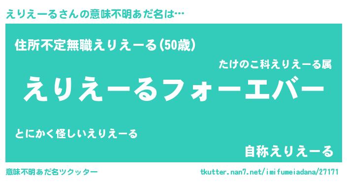 | 男性向けラノベタイトル風あだ名 | 『えりえーるに滅ぼされるだけの簡単なお仕事です』 |