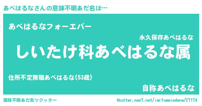 | 男性向けラノベタイトル風あだ名 | 『アベハルナスレイヤー』 |