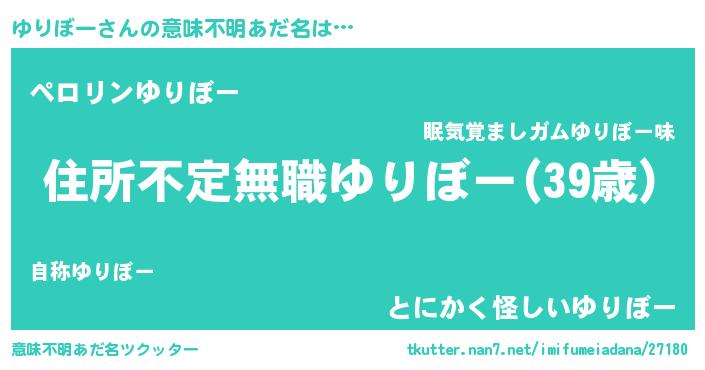 | 男性向けラノベタイトル風あだ名 | 『ゆりぼーに滅ぼされるだけの簡単なお仕事です』 |