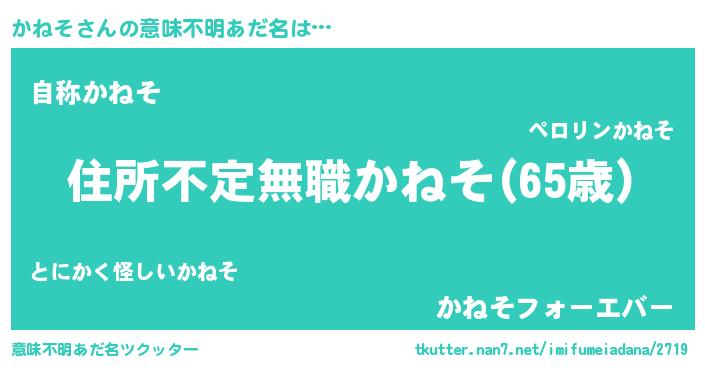 | 男性向けラノベタイトル風あだ名 | 『この素晴らしい世界にかねそを!』 |