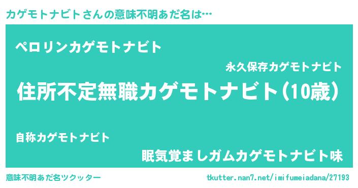 | 男性向けラノベタイトル風あだ名 | 『はたらくカゲモトナビトさま!』 |