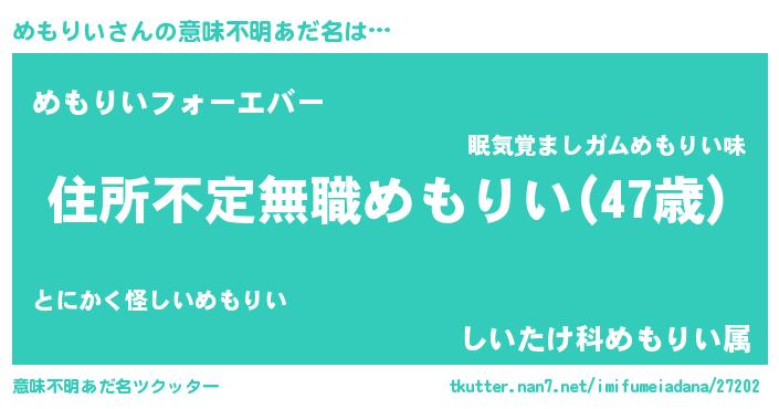 | 欧米人風あだ名 | 『アンジェラ・めもりい』 |