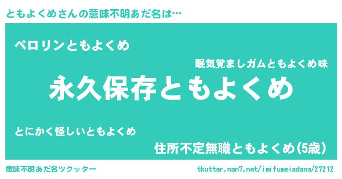 | 男性向けラノベタイトル風あだ名 | 『ともよくめという概念が存在しない退屈な世界 』 |