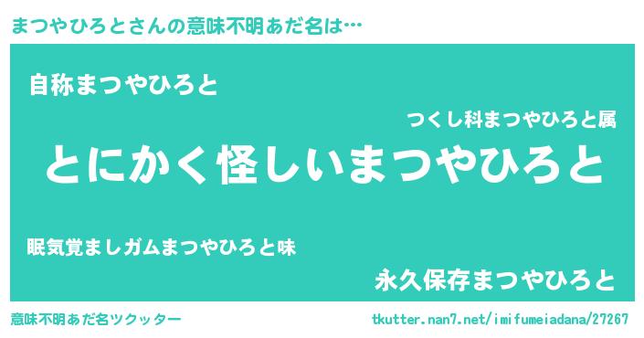 | ポケモン風あだ名 | 『ヒマツヤヒロト』『マツセウス』 |