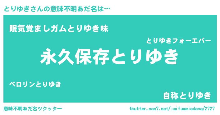 | 男性向けラノベタイトル風あだ名 | 『とりゆきという概念が存在しない退屈な世界 』 |