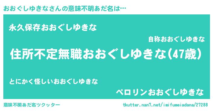 | 女子向けラノベタイトル風あだ名 | 『乙女ゲームの破滅フラグしかない悪役おおぐしゆきなに転生してしまった…』 |
