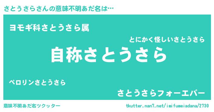 | 男性向けラノベタイトル風あだ名 | 『Re:さとうさらから始める異世界生活』 |