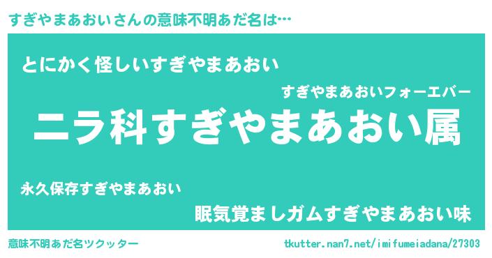 | ヒーロー風カッコイイあだ名 | 『炎刃騎士スギ』『ネオスギヤマアオイ』 |