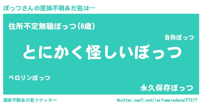 | ヘコむあだ名 | 『ぼっっ子』『ぼっつ(笑)』 |