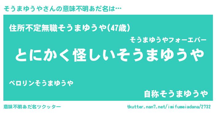 | 女子向けラノベタイトル風あだ名 | 『そうまゆうやは平凡を望む』 |