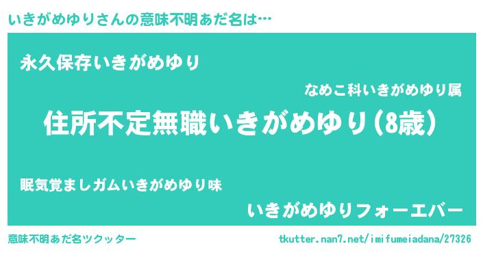 | 女子向けラノベタイトル風あだ名 | 『いきがめゆりが死なない童話 林檎のいきがめゆりの診療簿』 |
