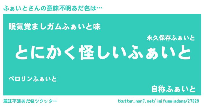 | ヘコむあだ名 | 『ふぁ太郎』『ふぁいと(小並感)』 |
