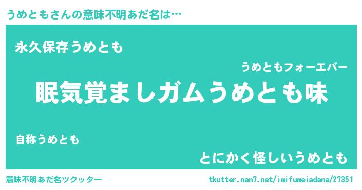 | ヘコむあだ名 | 『うめとも(爆)』『うめを』『牛乳』 |