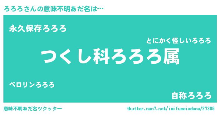 | ヘコむあだ名 | 『ろろろ(爆)』『ろろっ子』『つくし』 |