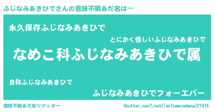 | 男性向けラノベタイトル風あだ名 | 『転生したらふじなみあきひでだった件』 |