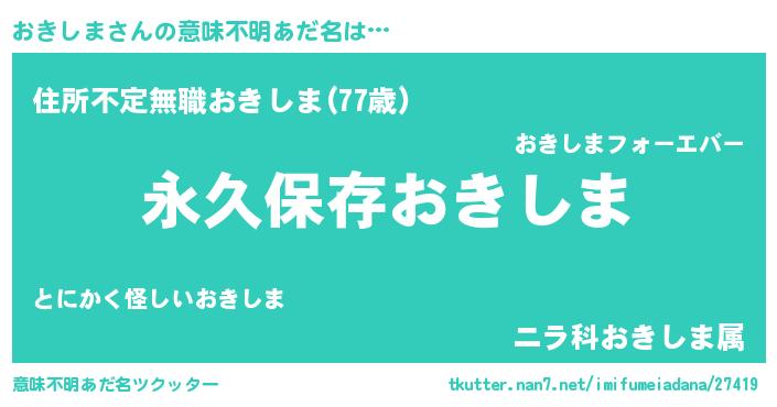 | 胡散臭い通販商品みたいなあだ名 | 『来世でも幸せになれる健康食品…その名も「おきしま」』 |