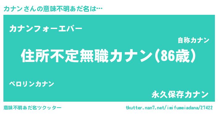 | 男性向けラノベタイトル風あだ名 | 『この素晴らしい世界にカナンを!』 |