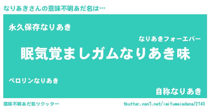 | ヒーロー風カッコイイあだ名 | 『正義の使者なりあき』『ネオナリアキ』 |