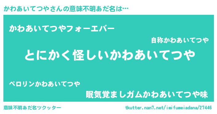 | 料理風あだ名 | 『かわあいてつやの豆乳スープ』 |