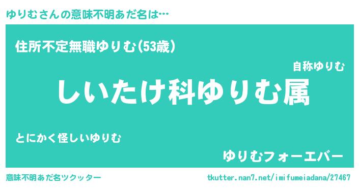 | 男性向けラノベタイトル風あだ名 | 『ユリムスレイヤー』『魔弾の王とゆりむ』 |