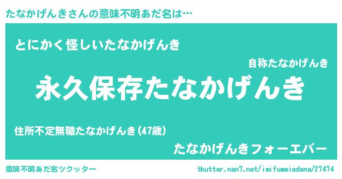 | ポケモン風あだ名 | 『ゼニタナ』『ヒタナカゲンキ』 |